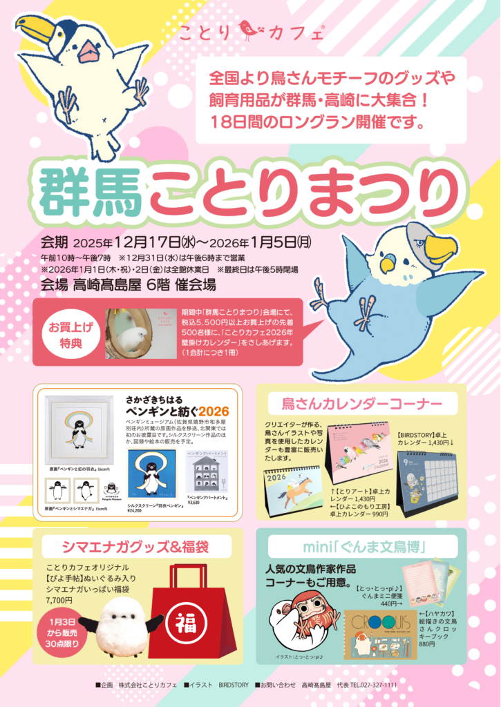 そんな“ことり愛”がぎゅっと詰まった展示販売イベント「群馬ことりまつり」が、今年も高崎高島屋にやってきます。